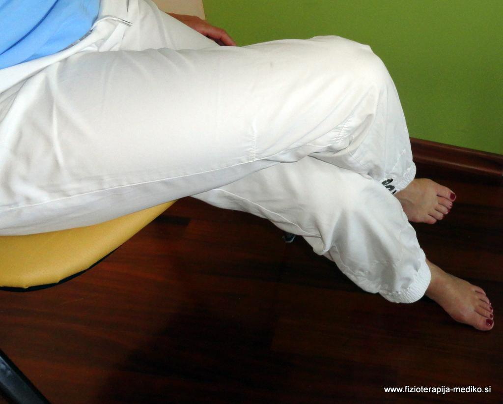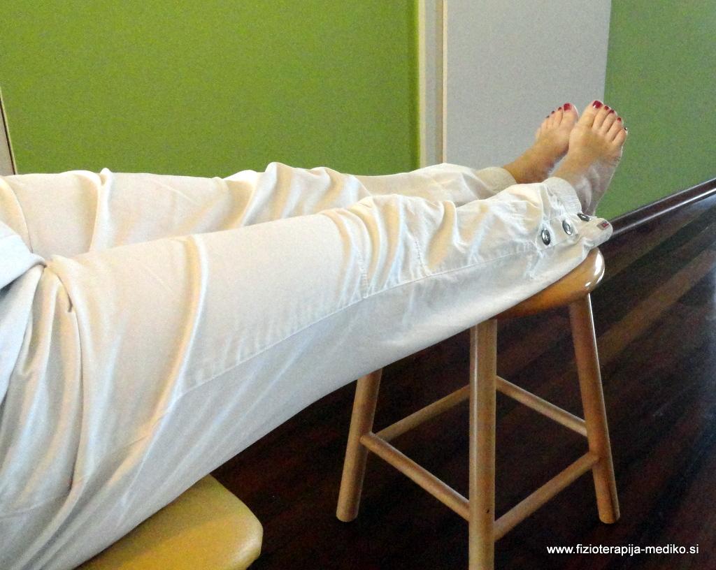 Med sedenjem, kadar to trenutek in gibčnost dovoljujeta, dvignite nogi v višino zadnjice (na stol, manjšo mizico),