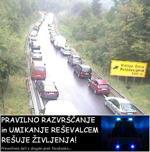 Reševalci, gasilci, policisti se z nujnimi opozorilnimi sredstvi ne vozijo kar tako malo za zabavo. Vaša kultura vožnje, neodzivnost v prometu, počasno in neučinkovito reagiranje ter odmikanje vašega vozila jim nič ne koristi, ravno nasprotno. Otežuje & ogroža vožnjo intervencijskim vozilom in posledično zmanjšuje možnost preživetja bolnikov & poškodovancev, ker bodo lahko zaradi Vas dobili pomoč prepozno.